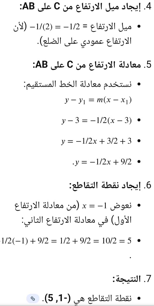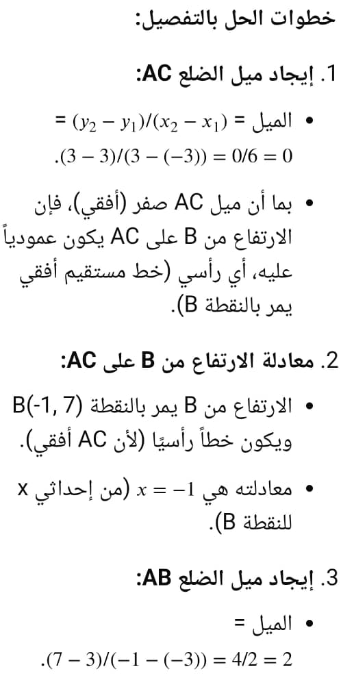إحداثيات ملتقى الارتفاعات في abc △ حيث A(-3 3 B(-1 7 C 3 3 هي))؟